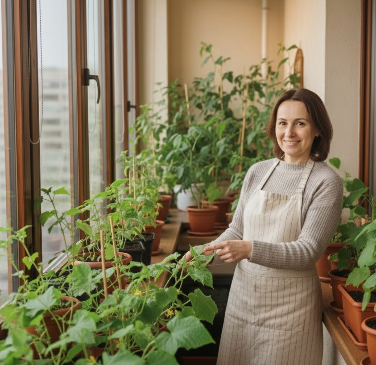 «Я перепробувала багато чого, але саме “Голілео” поводиться так, ніби створений для підвіконня: компактний кущ, а огірочків — як гірлянди», — усміхається господарка.